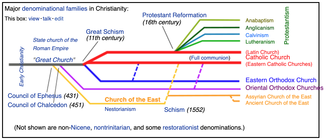 Hannah: The great church is what it’s known as. Yes. OK, so you have the Great Church. It goes on splits in a Roman Catholic, Eastern Orthodox, Roman Catholic, splits into Protestant, Roman Catholic, Protestants do all kinds of things. And thus church history is born. So this is like really the big the first big… hmmm problem. OK, I just want to get this out of the way now because it doesn’t fit in the rest of my timeline. This issue with Nestorias turns out big miscommunication and possibly some language barriers, possibly some letters lost in transit. He didn’t really believe that the hypostatic union wasn’t true.