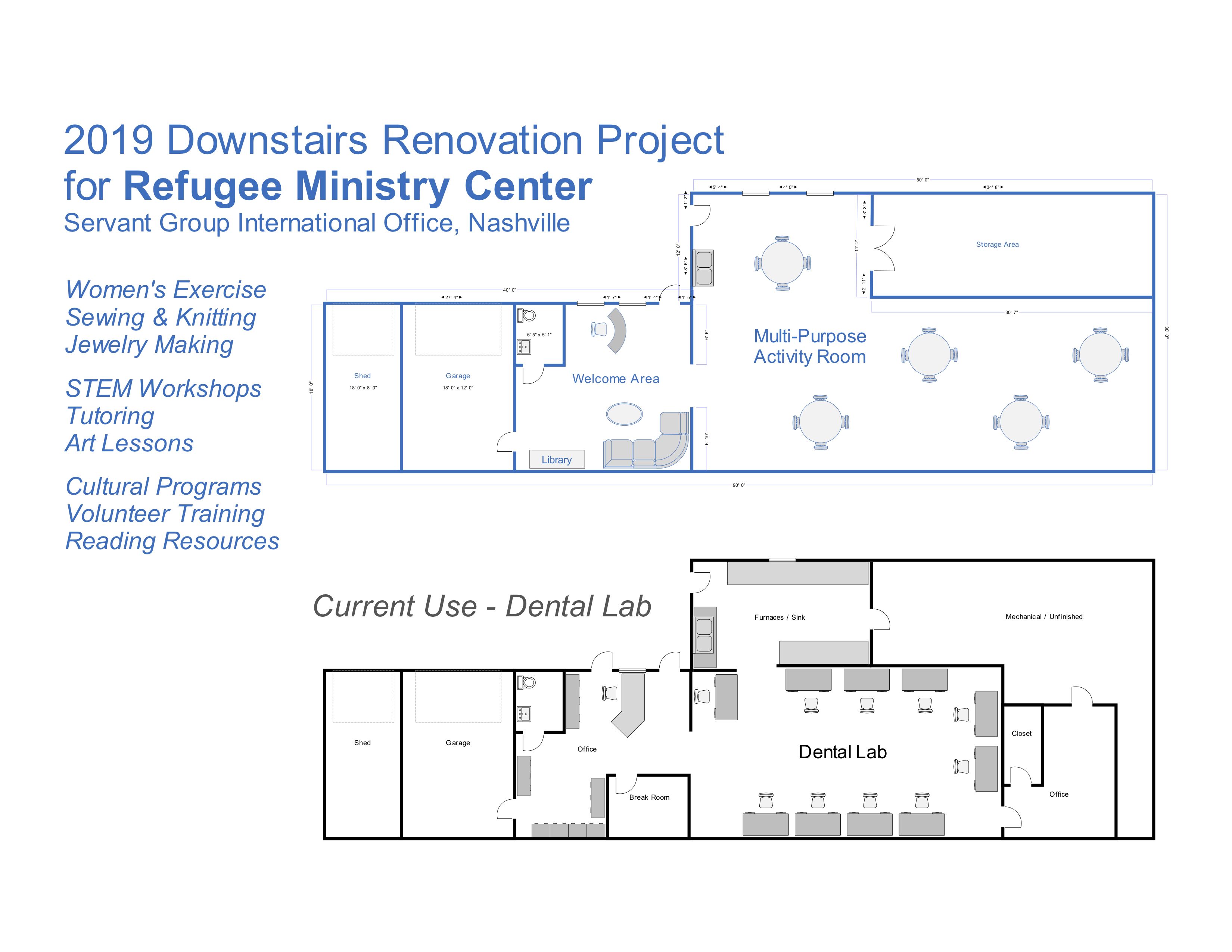 Some exciting news, – we’re getting ready to expand and renovate our downstairs office into a refugee ministry center! For a long time, we’ve wanted to have a place where our volunteers and refugees can meet together for programs and activities like sewing, exercise, job training and more. A little more info about this space God is providing…