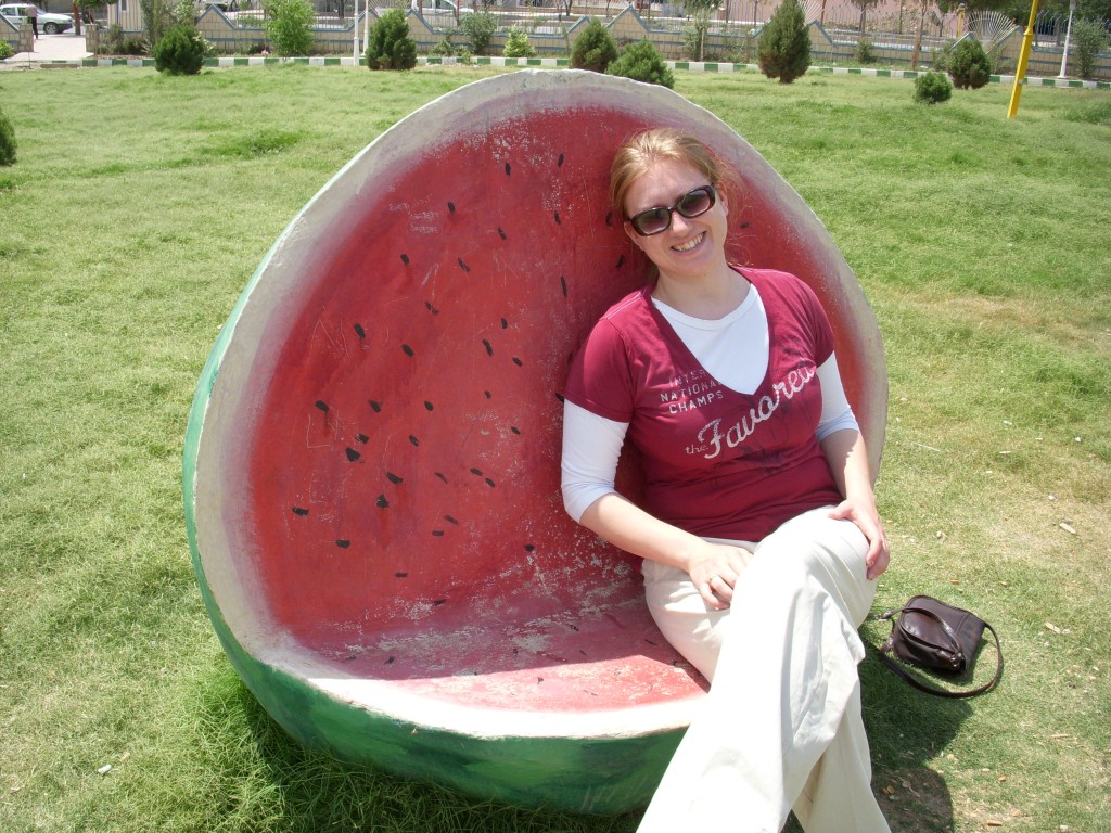Colleen: Right. One of the bigger and more well known parks in the city that I lived in is called Azadi Park. It means Freedom Park, and it’s the site of some horrific things. But it was next to one of Saddam’s old prisons and like it is both a Memorial and Park. And it’s huge. Yeah, at least for four there it was really big and we would go there and walk because it has a big, wide path around the whole outer edge. And along one portion of the path had exercise equipment set up and kind of like I don’t think I’ve ever seen exercise equipment like this in the US anywhere. It’s all like bodyweight resistance, maybe hydraulic pressure stuff all sunk into the concrete, a lot of spinny things.