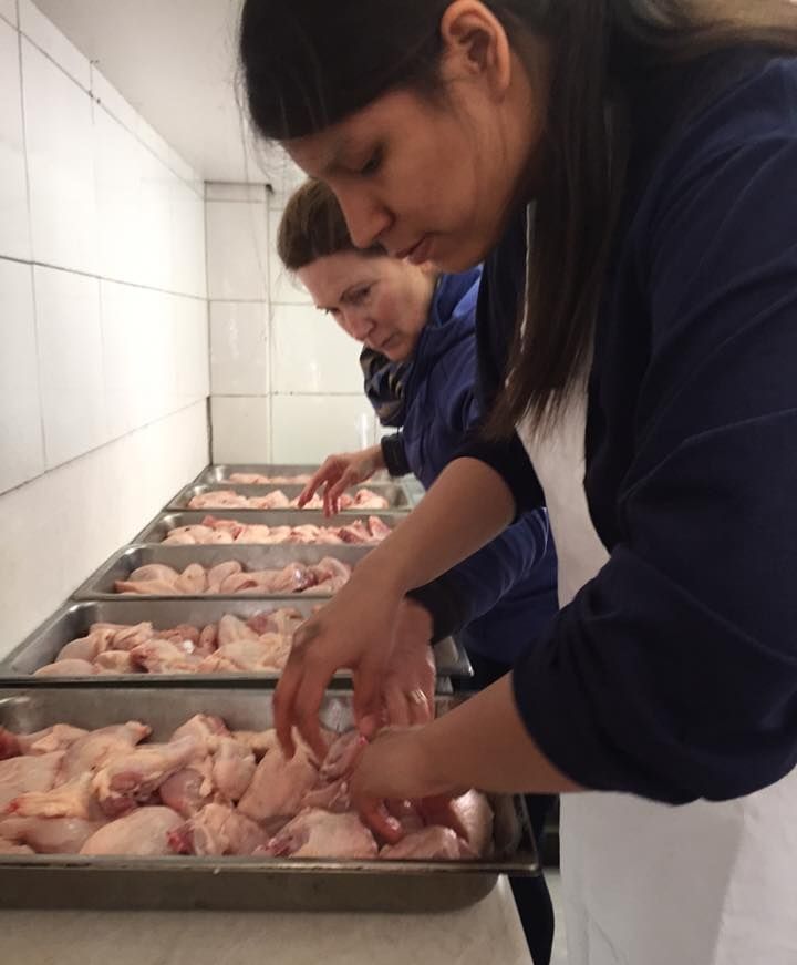 So the team started one morning by going to a huge open market, where they got rice, bananas and chicken for the special meal. After carrying all of this back to the church, we started the cooking and later assembly lined for packaging the rations.